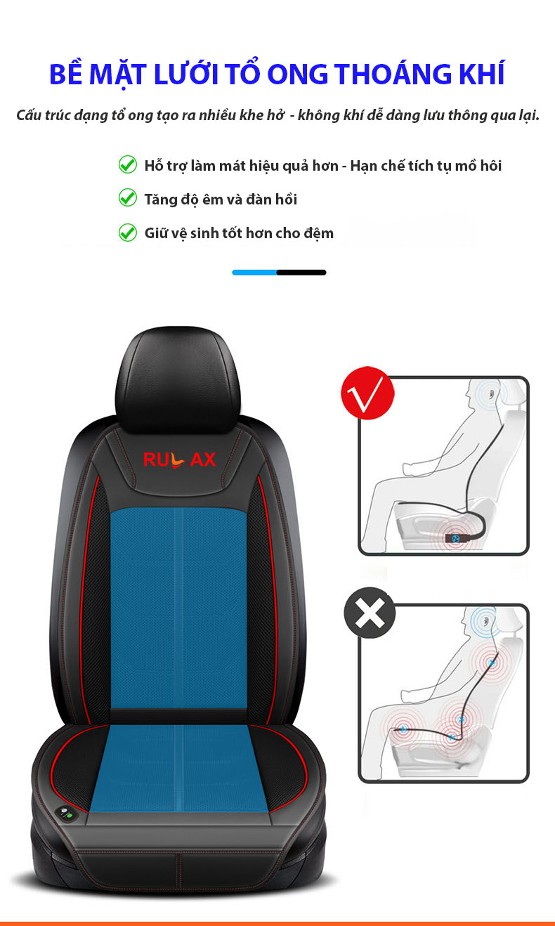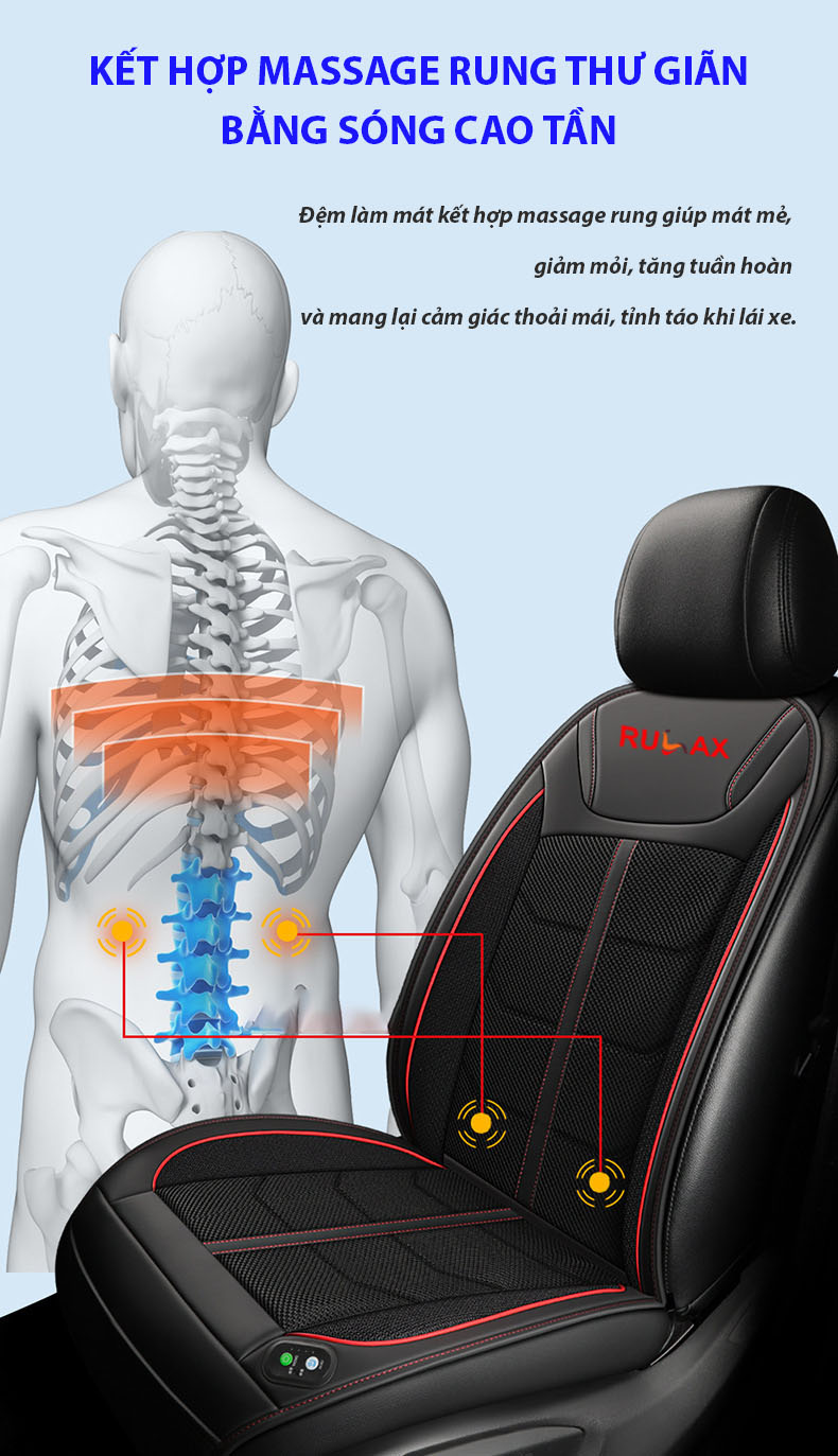 Đệm Làm Mát Ghế Ô Tô RULAX Có Chức Năng Massage - Đệm Điều Hòa, Tựa Lưng Ghế Ô Tô Giúp Giảm Mệt Mỏi Khi Lái Xe.