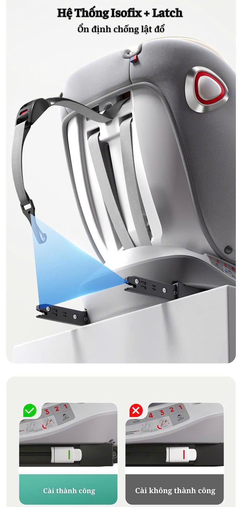 - Linh hoạt theo từng giai đoạn phát triển: Tư thế ngồi ngược chiều xe an toàn cho bé sơ sinh, tư thế xuôi chiều xe thoải mái khi bé lớn hơn.