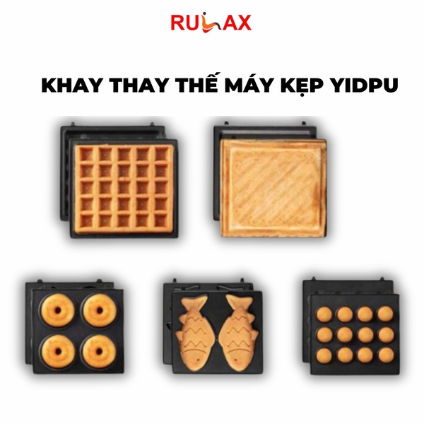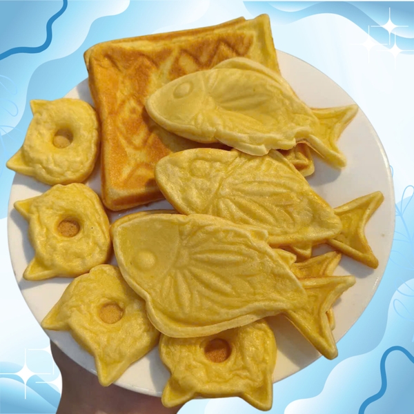 Máy được trang bị các loại khuôn gồm khuôn bánh sandwich, khuôn bánh waffle, khuôn bánh takoyaki, khuôn donut và khuôn bánh cá.