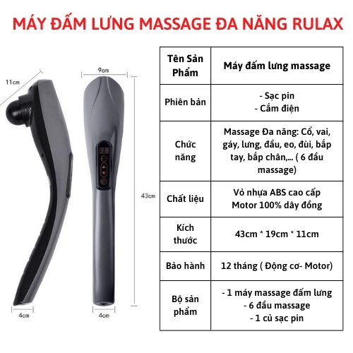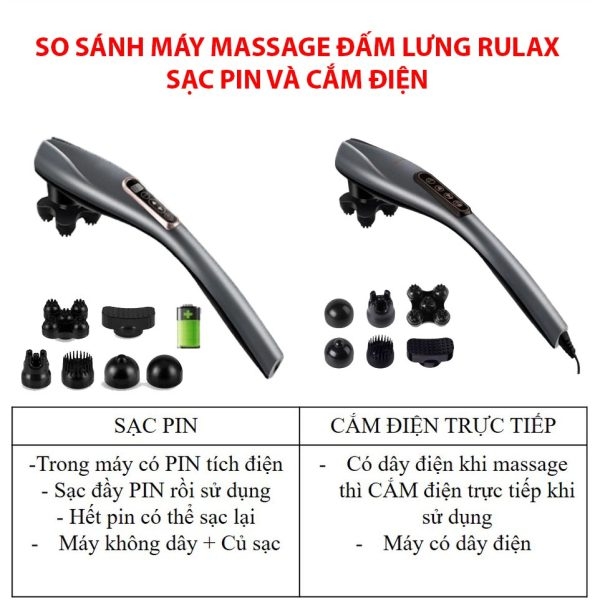 Máy Massage Cầm Tay Sạc Pin Không Dây, Đấm Lưng 6 Đầu, Massage Toàn Thân Phiên Bản Tiếng Việt RULAX