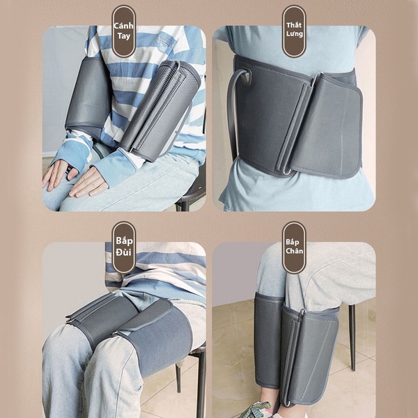 Túi khí co bóp: Túi khí massage giúp xoa bóp các cơ bắp mệt mỏi, ở trong tình trạng đau nhức. Thư giãn cho các cơ, đồng thời tăng cường lưu thông máu. Túi khí kết hợp nhiệt hồng ngoại làm ấm sẽ tăng hiệu quả cho vùng massage là bắp chân, mu bàn chân và lòng bàn chân.