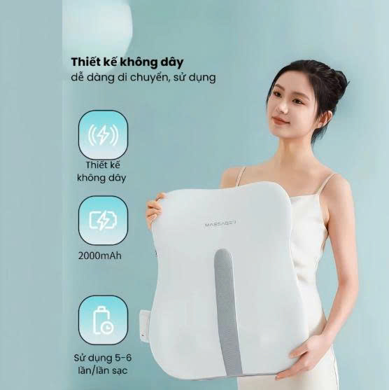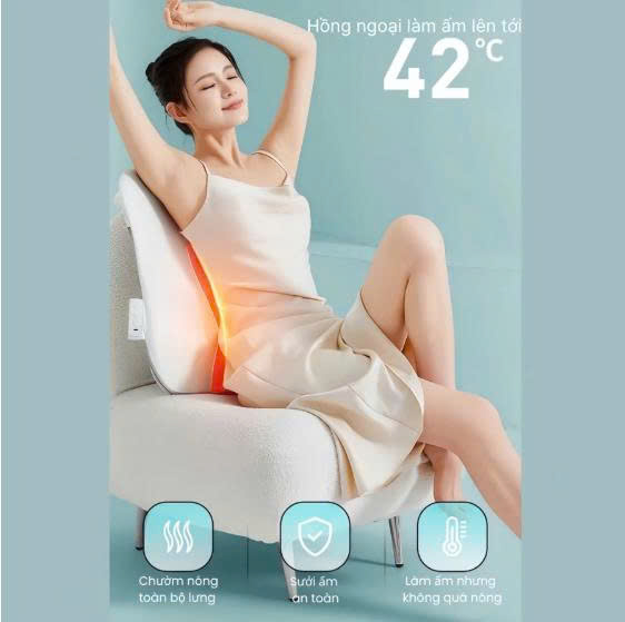- Massage đa điểm chạy dọc lưng: Hệ thống con lăn được thiết kế để di chuyển linh hoạt dọc theo cột sống, tác động sâu vào các nhóm cơ, giúp giảm căng thẳng và đau mỏi.