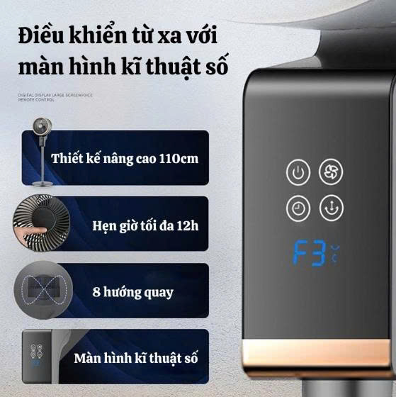 Quạt Tuần Hoàn Không Khí, Quạt Cây Đứng Có Điều Khiển Từ Xa Và Màn Hình Cảm Ứng Thông Minh - Độ Ồn Thấp - Tiết Kiệm Điện (BH 06 Tháng)